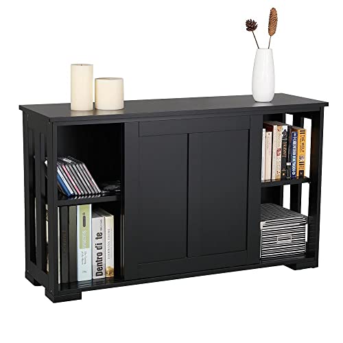 Yaheetech Köksskåp, förvaringsskåp med förvaringsutrymme och skjutdörrar, konsolbord, skänk av trä, köksbyrå, fristående skåp, bufféskåp, sidoskåp, köksmöbler, svart