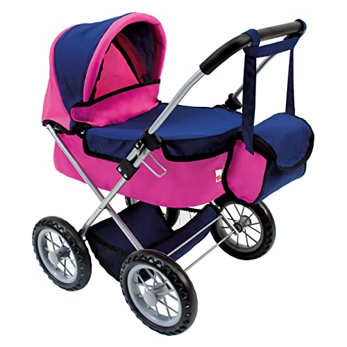Bino docka buggy med ficka, leksak för barn från 3 år (dockvagn inklusive hängande väska och shoppingnät, justering av huvud och fotdel, hopfällbart funktion) rosa/blå