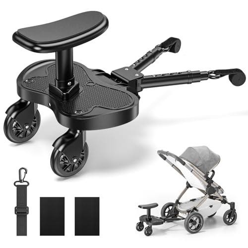 Sichensh Buggy Board med säte, buggy bräda för barnvagn, barnbräda, stegbräda med 360° vridning, mycket elastisk PU-hjul, barnvagn, stegbräda för barnvagnar, universell