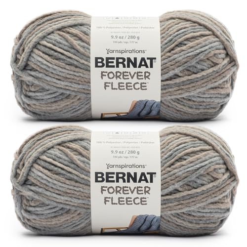 Bernat Forever fleece gren garn – 2-pack med 280 g/9,9 oz – 100% polyester – #6 Super Bulky – 194 yards – stickning/virkning