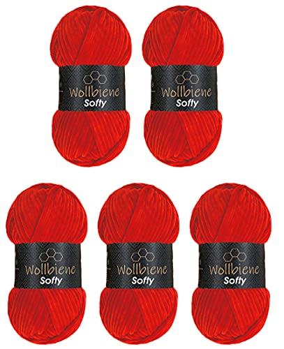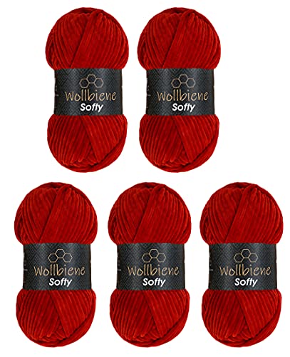 Ullbi Softy 5 x 100 gram chenillull för virkning ull för stickning, babyull, 500 gram chenille ull, super bulky crochet garn (röd 09)