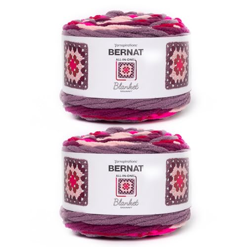 Bernat filt mormor fyrkantigt fruktjuice garn – 2-pack med 240 g/8,5 oz – 100% polyester – #6 Super Bulky – 178 meter – stickning/virkning