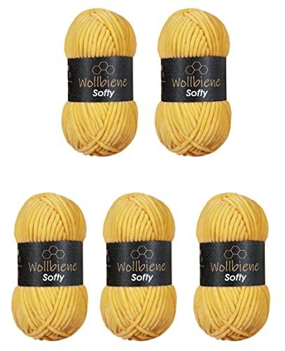 Ullbi Softy 5 x 100 gram chenillull för virkning ull för stickning, babyull, 500 gram chenille ull, super bulky crochet garn (majsgul 28)