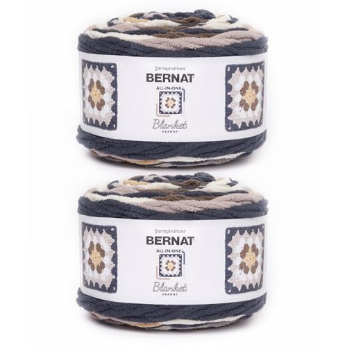 Bernat allt i ett filt mormor asfalt garn – 2-pack med 240 g/8,5 oz – 100% polyester – #6 Super Bulky – 178 meter – stickning/virkning