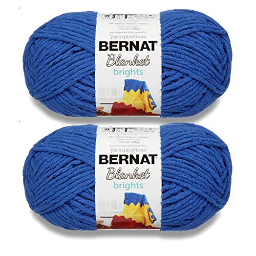 Bernat Blanket Brights Garn, 2-pack, 300 g, 201 meter, polyester, tjocklek 6 super bulky, för stickning och virkning, kungsblå