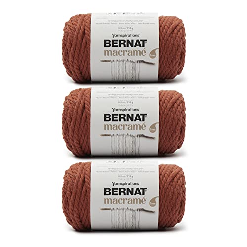 Bernat makramé bränt orange garn – 3-pack med 250 g/8,8 oz – bomull – #6 Super Bulky – stickning, virkning och hantverk