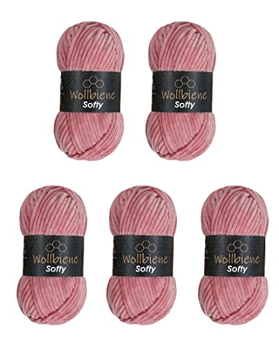 Ullbi Softy 5 x 100 gram chenillull för virkning ull för stickning, babyull, 500 gram chenille ull, super bulky crochet garn (bär 85)