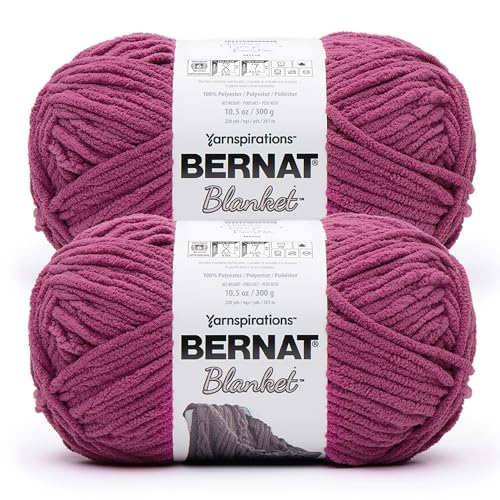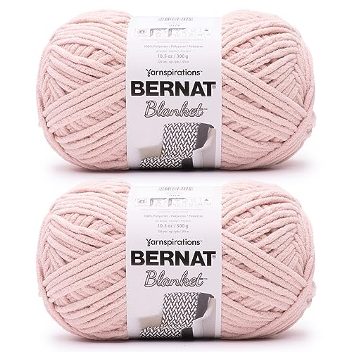 Bernat Blanket Super Bulky akrylgarn – 2 stycken 300 g #6 Chunky Chenille, tungt garn för stickning och virkning, amigurumi, tjocka filtar (rosa damm, 220 yards 2-pack)