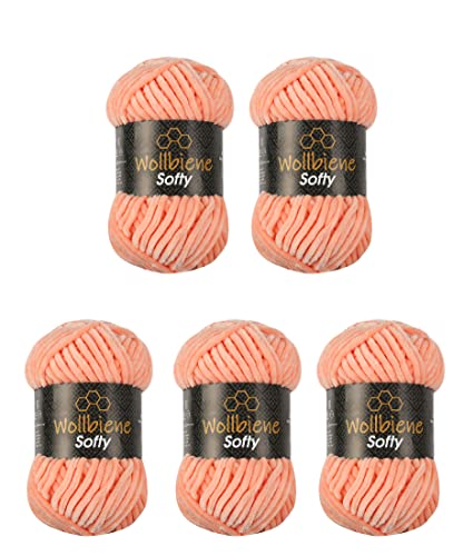 Ullbie Softy 5 x 100 gram chenillull för virkning ull för stickning, babyull, 500 gram chenille, ull, super bulky crochet garn (lax 30)