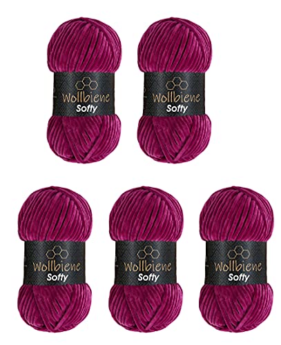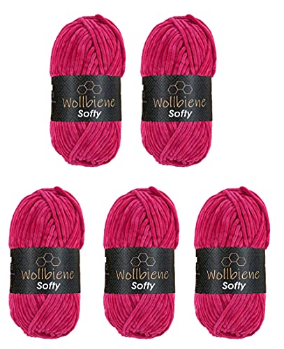 Ullbi Softy 5 x 100 gram chenillull för virkning ull för stickning, babyull, 500 gram chenille ull, super bulky crochet garn (fuchsia 83)