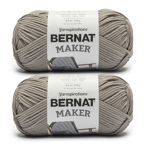 Bernat Maker garn – 2-pack á 250 g – 72% bomull 28% nylon – #5 extra kraftigt (Bulky) – 290 m – för stickning, virkning och amigurumi, brungrå (Clay)