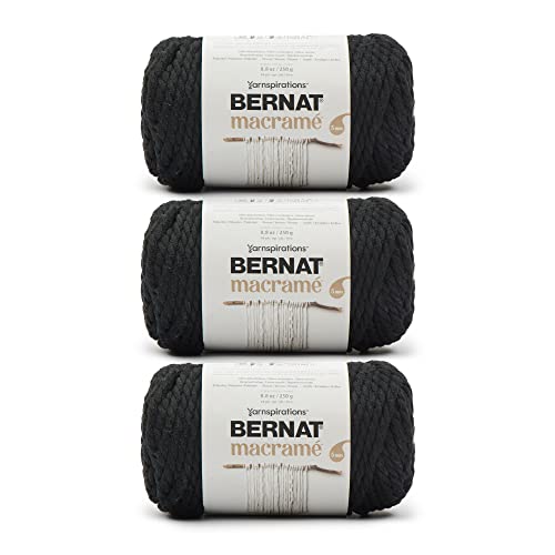 Bernat Macrame 3-pack med 250 g/8,8 oz-bomull-#6 Super Bulky-stickning/virkad garn, svart