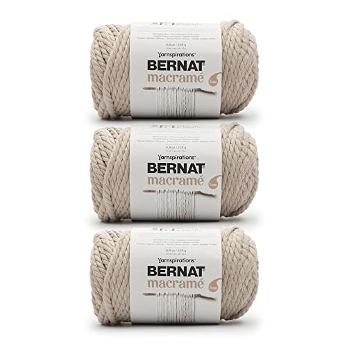 Bernat Makrame 3-pack med 250 g/8,8 oz-bomull-#6 Super Bulky-stickning/virkad garn, brungrå