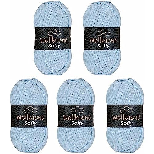 Ullbie Softy 5 x 100 gram chenillull för virkning ull för stickning, babyull, 500 gram chenille-ull, super bulky crochet garn (ljusblå 31)