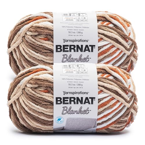 Bernat Blanket Stripes Garn, 2-pack, 300 g, 201 meter, polyester, tjocklek 6 super bulky, för stickning och virkning, tjockt chenille-garn, disiga stränder (Foggy Shores)