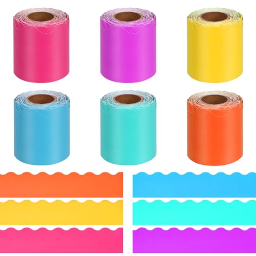 Swpeet Colorful Borders for bulletinbräda, Scalloped trim fall bulletin Board Decorations för höst Thanksgiving Classroom Decor 6 rullar 40 cm 6 färger bulletin Board Borders sortiment kit