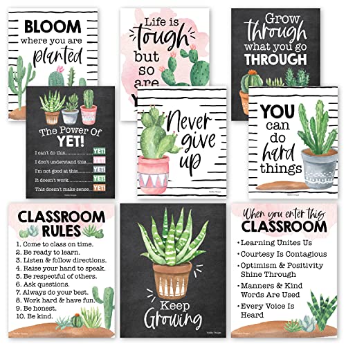 Hadley Designs 9 Cactus Classroom Decor Signs, Welcome Sign For Bulletin Board Decorations, Growth Mindset Classroom Posters Elementary, Middle School, Classroom Rules