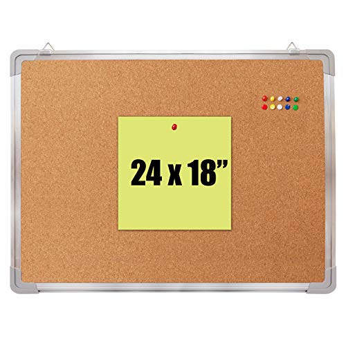 Anslagstavla set – korkbräda 61 x 45 cm + 10 färgstift – liten mini hängande tackmeddelande memo bildtavla för hemmakontor skola – presentation, display och planering (kork 61 x 45 cm)