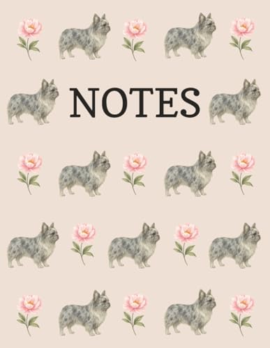 Fluffy Frenchie and Peony Notebook: Blue merle, Long haired, French Bulldog, Bully, Floral, Flowers, Journal, Neutrals, Gift, Dog lover, Dog breeds, ... ruled, Paperback, 8.5 x 11 inches 100 pages