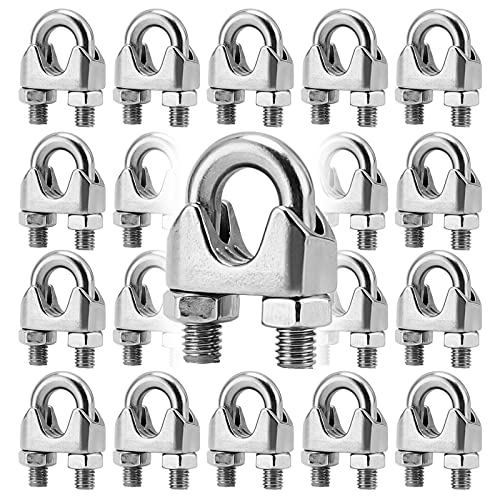 ZEONHEI 20 stycken 10 mm vajerklämma, M10 rostfritt stål strykvajerklämma, U-bult, vajer, ståltråd, silver