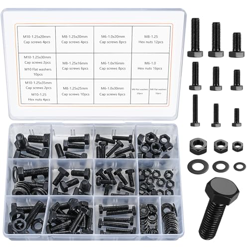 128 st platta sexkantiga bultar och muttrar och brickor, M6 M8 M10 sexkantiga huvudbultar och muttrar rostfritt stål, bult, gängade skruvmaskiner, sexpanniga brickor (128 svart)
