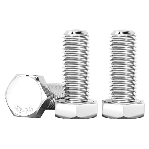 Drenky Hexagonal bult M10 rostfritt stål A2 V2A M10 x 20 mm Hexagonal huvudskruv DIN 933 bultar för möbelreparation, bil- och maskinmontering, silver, 10 stycken