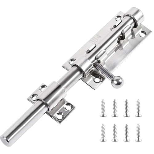 Dörrspärr, 304 skjutstång, rostfritt stål, bultlås, spärr, dörr med 8 skruvar, 200 mm dörrspärr, dörrspärr, rostfritt stål, spärr för trädgårdsgrind, hus, gård, staket