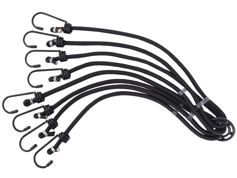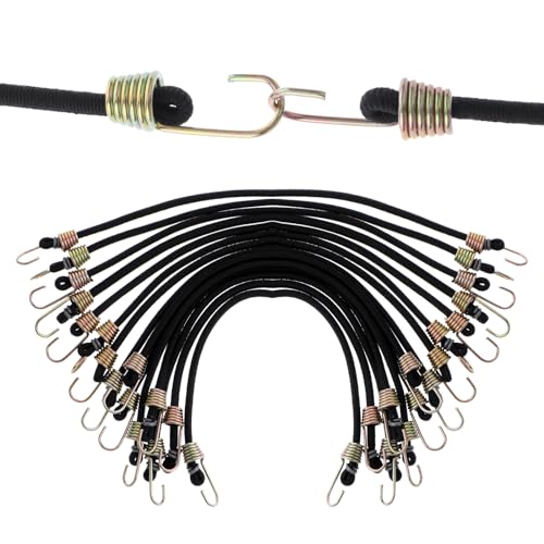 WeFine Förpackning med 10 bungee-snören med krokar väderbeständiga och UV-beständiga bungee-remmar kraftiga elastiska bungee-rep för husvagn camping husvagnar bagageställ