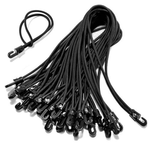 SWTYExt 20 m svarta bungee-snören med krokar set bungee-rep 4 mm elastiskt rep 50 st plastkrokar kraftigt elastiskt rep för släpvagn presenning camping poolöverdrag tältstång cykeltransport