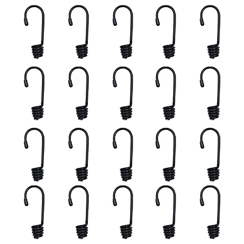 Yingcen 20 St Svart Stötdämparkrok 6 mm, Plastbelagd Spiral Bungee-Rep Ände Krok för Stötdämpare Elastiskt Rep