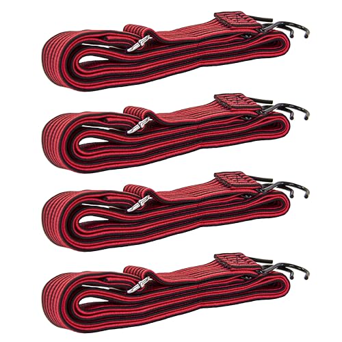 dbest products Vagn Dolly högspänningseffekt justerbar 63 tum platt bungee-rep 4-pack med krokar och spänne slitstark elastisk rem max stretch knytband rör sig utomhus