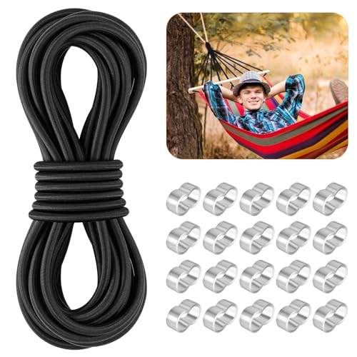 HGRGHH Bungee Sladd Svart 8mm 10m Svart, Stark Elastiskt Rep med 20 M9 Aluminium Crimpsløyfe, Elastiskt Gummisnöre for Trailerduk, DIY Håndverk Sying, Bagasje, Camping, Seiling Tautrekksnor
