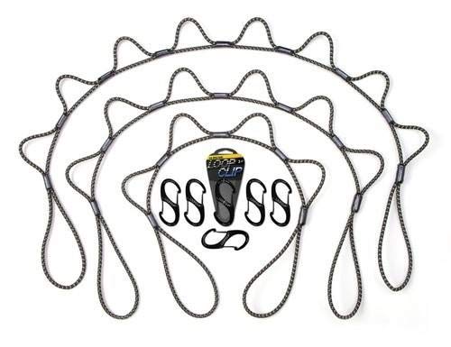 Slingrep jägarset, bungee-sladd spänningssystem, justerbar lastrem, knutfri, lastbil, husbil, ATV, camping, utomhustillbehör, slinga, klämma och go inklusive 91,2 m, 152 cm rep och 6 slingklämmor