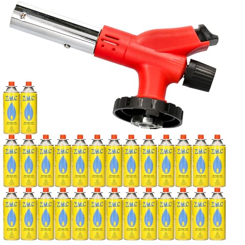 Z.M.C Gasbrännare 1,0 kW + 28 gaspatroner 227 g, flambrännare upp till 1 300 °C, bunsenbrännare, lödbrännare med justerbar låga, brännarfäste