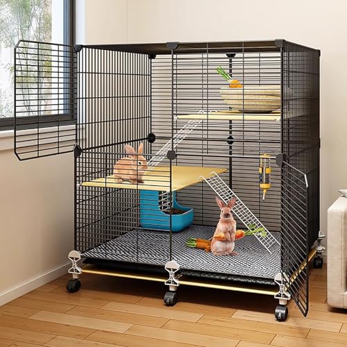 WXXSHGDW 2-Vånings Kaninbur, Kaninbur Inomhus med Hjul, Stor Kaninbur, Bur för Små Djur, Husdjursbur i Metall med Utdragbar Bricka