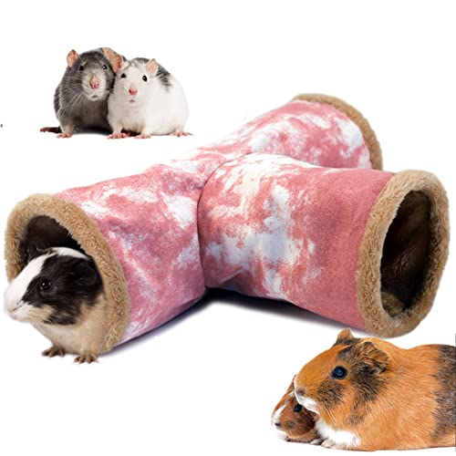 LeerKing Kanintunnel, marsvin, rör, gosig tunnel, tvättbar, gosig grotta, leksak för råttor, iller, katttunnel, små djur, bur tillbehör Φ15 cm rosa