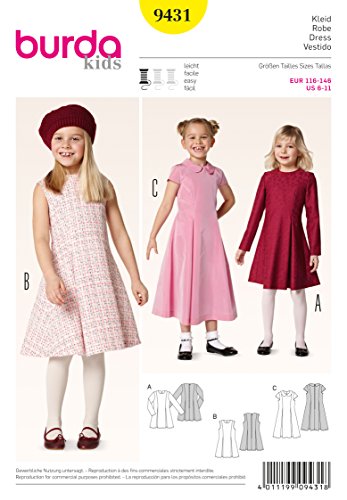 Burda 9431 mönster klänning med källarveck (barn, storlek 116–146) nivå 2 lätt