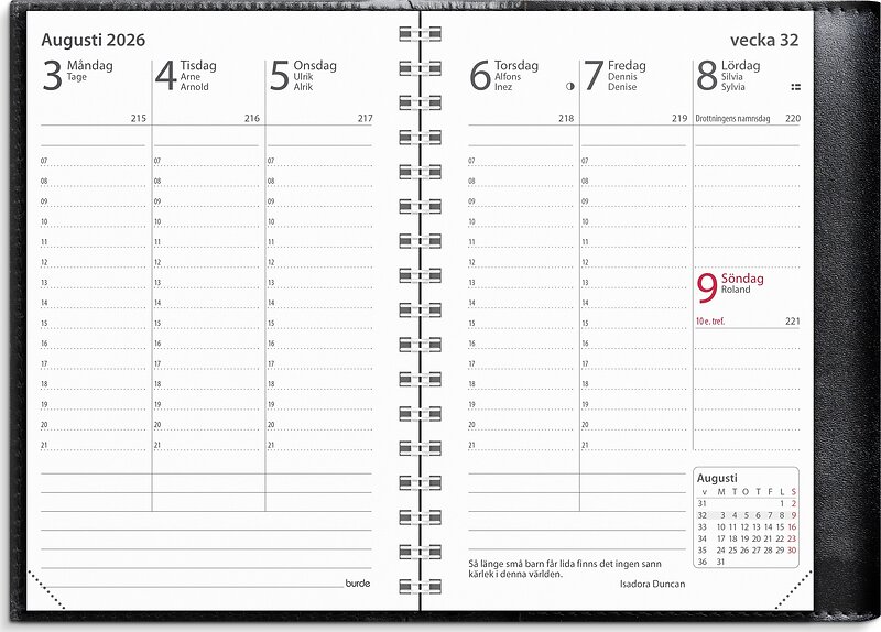 Burde Kalender 2026 A5 Stor Veckokalender Forma Deluxe Svart