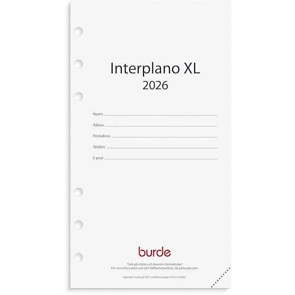 Burde Kalender 2026 Wega Refill Almanacksförlaget