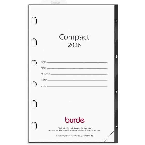 Burde Kalender 2026 Compact Kalendersats 79x127 mm