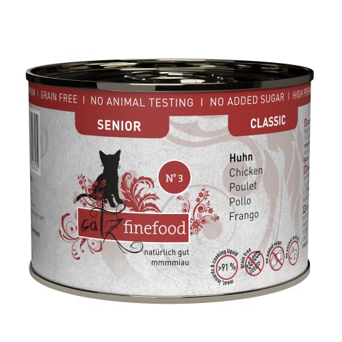 catz finefood Senior N°03 Kyckling kattmat våt – premium våtfoder för din senior katt – spannmålsfri, utan socker, hög kötthalt, vitaminer och mineraler (6 x 200 g burk)