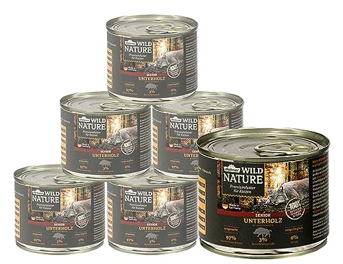 Dehner Wild Nature Kattmat auwald, våtfoder spannmålsfri/sockerfri, för vuxna katter, hjor/kalkon, 6 x 200 g burk (1,2 kg)