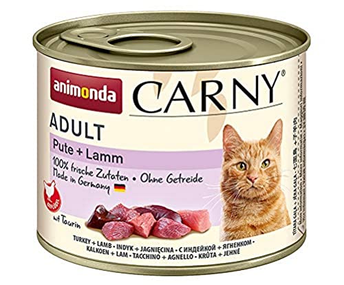 Animonda Carny Adult kattmat för vuxna katter, burk våtfoder för vuxna katter, kalkon lamm, 6 x 200 g