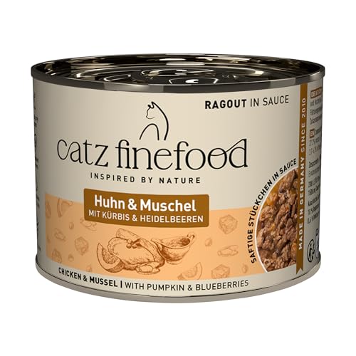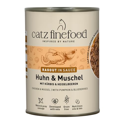 catz finefood Ragout N° 613, kyckling och mussla, kattmat, våt mat för katter i sås utan spannmål och socker med hög kötthalt, 6 x 380 g burk