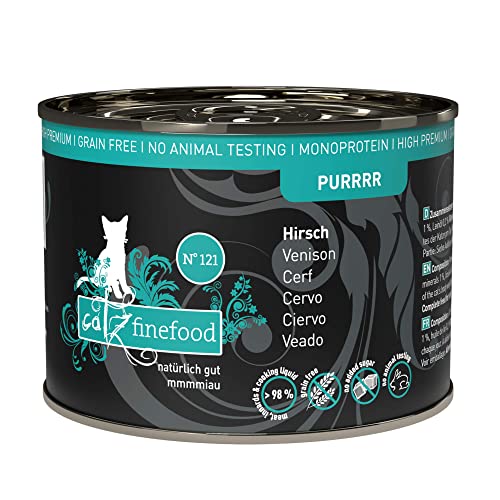 catz finefood Purrrrr hjort monoprotein kattmat våt N° 121, för livsmedelskänsliga katter, 70% kötthalt, 6 x 200 g burk