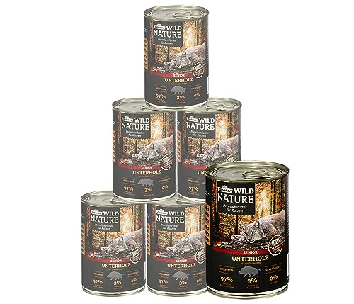Dehner Wild Nature Kattmat gräsmatta, våtfoder spannmålsfri/sockerfri, för äldre katter, vildsvin, 6 x 400 g burk, (2,4 kg)