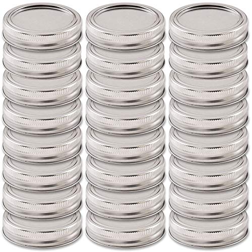 Newk 24 uppsättningar bred mun murare och band, återanvändbar metall glasburk konservering med silikonpackningslock passar bollar, Kerr och fler burkar (24 lock och 24 band, 86 mm/3,38 tum, silver)