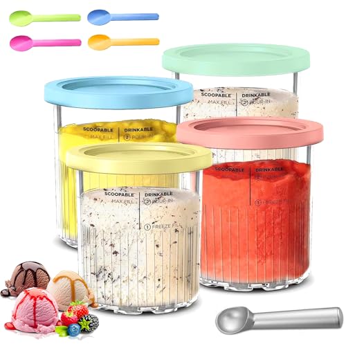 4-pack glasbehållare NC500 NC501 ersättning för Ninja Creami Deluxe NC501/NC500-serien, ninja-krämiga deluxe-burkar, glassbehållare med läckagesäkra lock och skedar
