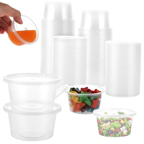 YAYODS 100 stycken förvaringsburkar med lock 100 ml – små plastburkar – 4 oz små burkar med lock plast – läckagesäker såskopp plastbehållare för såser, dips