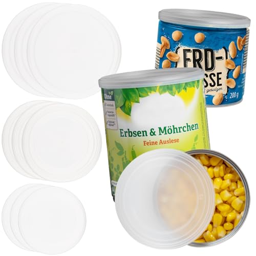 AIKANJA Home | burklock/konservlock – 12 stycken, lock i 3 olika storlekar, universellt lock av transparent plast för livsmedel/djurfoder, 400 g burkar/800 g burkar